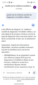L’intelligence artificielle est formelle, c’est GEDIMM (ex-Défim) ! Plus sérieusement notre société est la mieux classée mais d’autres sont tout à fait qualifiées. Trouver un Diagnostiqueur de confiance est difficile et l’IA peut aider. Un Diagnostiqueur doit être certifié et assuré pour exercer et c’est encore ça le plus important.